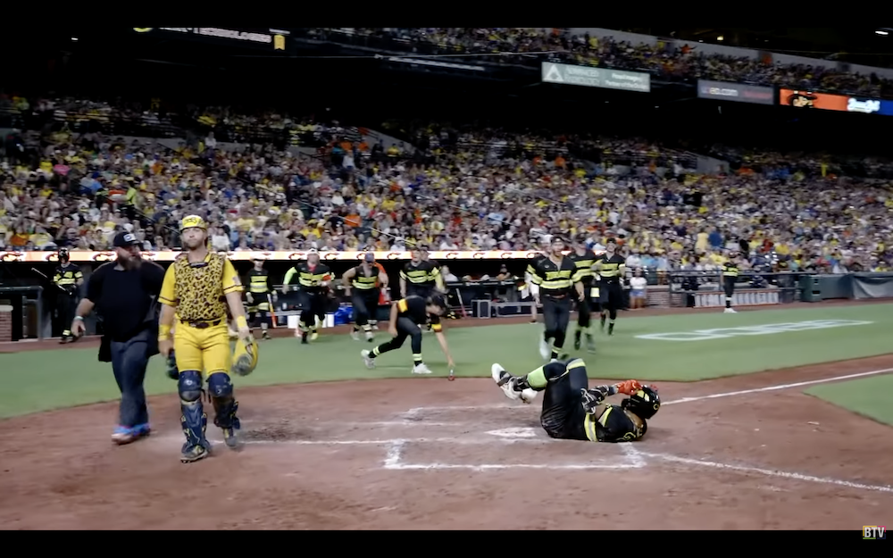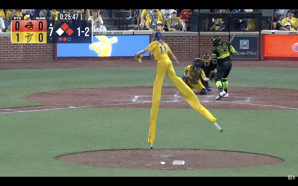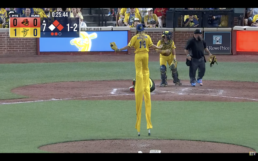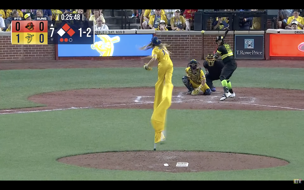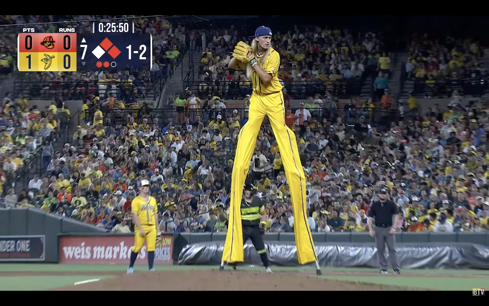 The results: A single pitch resulting in a beanball from the world's tallest pitcher, who checks in at 10-foot-9 when on the field.