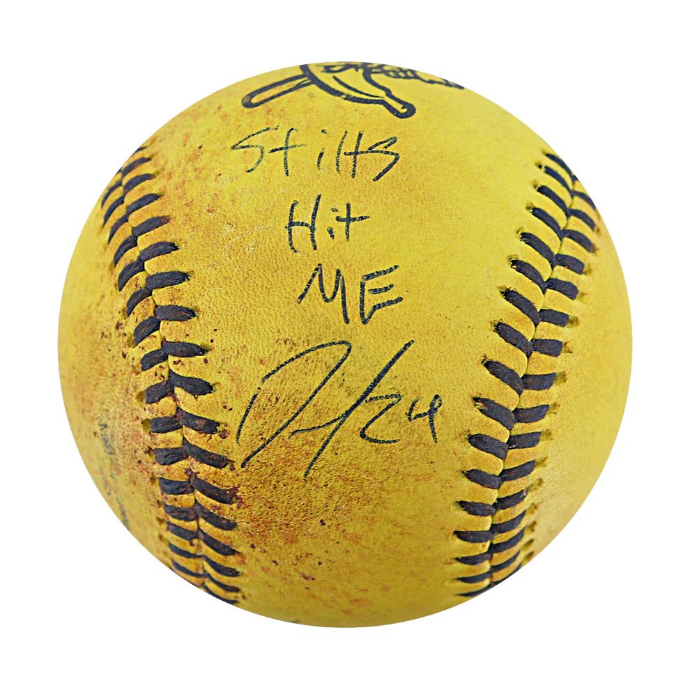 What's Buzz-worthy: Oh, did I forget to mention something? This ball is fully signed with one side of the story from each of them -- a dual-autographed gamer. Do I need to say more? Well, this game was his 30th appearance of the season out of 40 played and Stilts hit just four batters. ... Beyond that, it's Friday ... and I still have work to do. This one speaks for itself and it cost me the same price as most of the other baseballs documented and sold by the team.