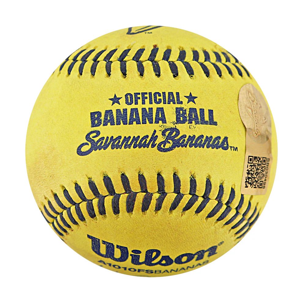 This month's item in my Collecting Game-used series is my third gem in a triple crown of game-used baseballs landed directly from the Savannah Bananas. Despite what you see above, this is no tall tale with this baseball -- it's fully authenticated, video-documented and has some ink to detail its story, too.