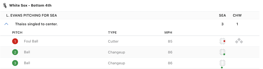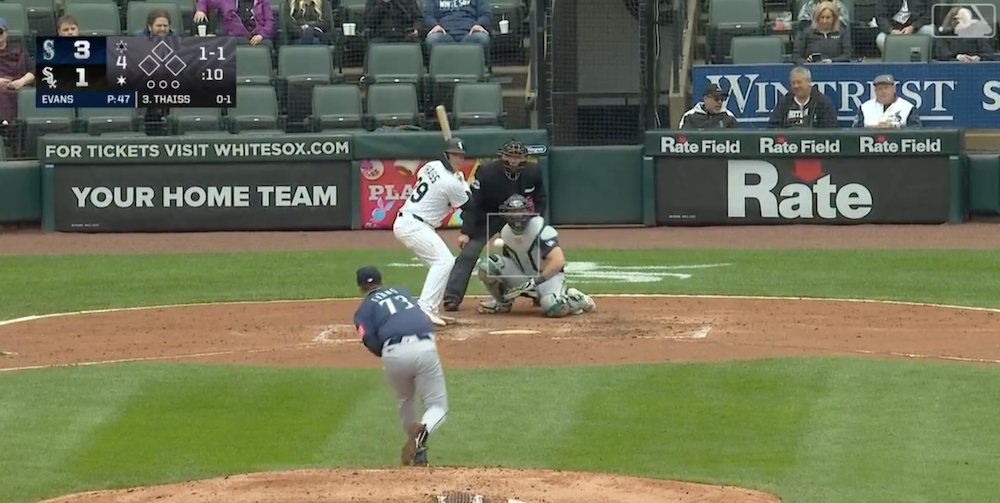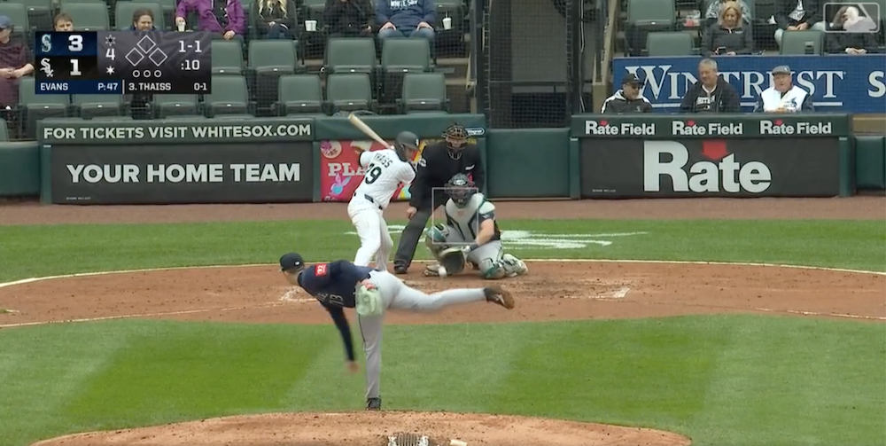 The matchup: Mariners rookie SP Logan Evans vs. White Sox C Matt Thaiss in the fourth inning of a 6-5 Seattle victory.