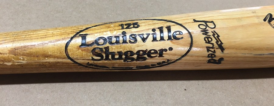 I don’t have any doubts that this bat is real based on the wear, the autograph and the tape job, which is a slightly less intricate version of his complicated taping I have on many a gamer in my deep stash of his bats. (I even have one other no-name stock model signed by him.) This one is, however, lacking his typical knob markings that were typically a nod to his grandmother or his uniform number but everything else is in the ballpark. Knowing the spring nugget, my research continued.