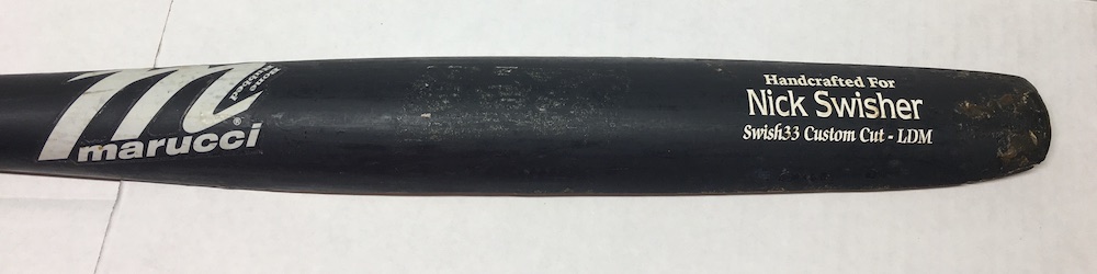 Game-used basics: Nick Swisher Marucci Swish33 Custom Cut LDM bat -- likely broken sometime during 2014 season.