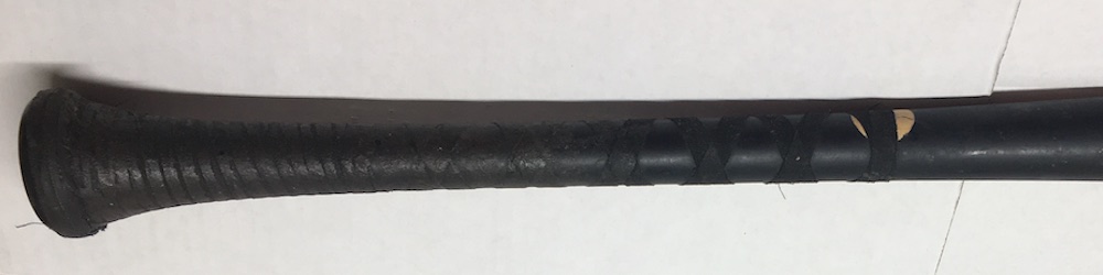 In a nutshell, that sums up this month's item in this Collecting Game-used series. You can see a teaser of what's left of the pice above with pine tar and shards of what looks like maple left behind. Thankfully, while there's a lot of mystery to this one, the identifying side of the barrel remains in play ... and that is why I grabbed this piece for my personal collection.