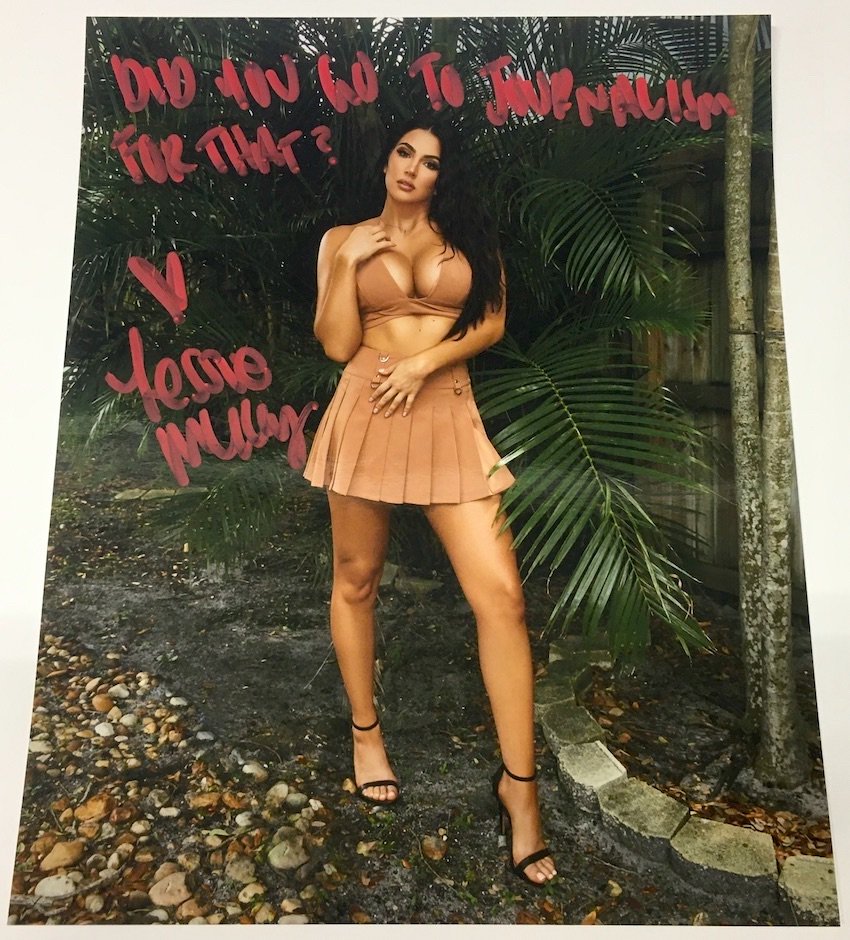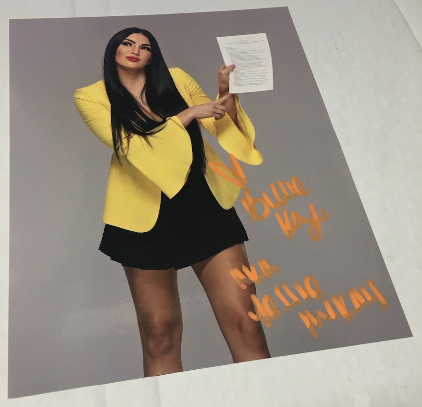 In WWE, she was known as Billie Kay and in the years before -- and since then, too, because it’s her real name -- she’s Jessica McKay. Her and her tag team partner, Peyton Royce aka Cassie Lee, have been known as The IIconics and The IInspiration, a championship winning (at Wrestlemania no less) pair of Aussies who aren’t shy about talking down their opponents -- or an interviewer or two -- non-stop. Watch the video above -- and watch for the reaction -- for just a taste and two of those catchphrases. For a brief time, they were split apart in WWE and my new piece of memorabilia comes from that time, when Kay was meeting with teams, offering up her résumés and headshots (see gallery) and helping them out around ringside as you can see below (see video), as well.