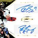 The Basics: Collectors can expect a 300-card base set that's capped by 100 rookie autos. ... New Wave insets will be found one per box with Cosmic and Galactic parallels limited to no more than 100 copies. ... On the autograph front, there will be Prime Signatures Dual, Triple and Quads to chase along with Super Bowl Dual Signatures that will be limited to only 25 copies. They'll also have a 1/1 Holo Gold version. ... A Rookie Signature Cuts set will include the top 40 rookies in the draft as a tribute to the memorable 2004 Prime Signatures release. They'll have Black (/5) and 1/1 printing plates to chase. ... NFL veterans will be found as Prime Signatures and Prime Signatures Materials cards limited to no more than 99 copies. ... Rookie Signature Cuts will have autos atop material swatches and be limited to no more than 199.