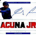 The Basics: There will be a number of new booklets, including Legendary Lineups, Quad Signatures, Six Signatures, Franchise Lineups, New York Row, and a 1/1 Babe Ruth and Lou Gehrig combo you see up top. ... Among the new stars' inclusions? Well, for Shohei Ohtani alone, there will be a number of autos -- Rookie Material Signatures, Player’s Collection Signatures, Rookie Triple Material Ink, Hometown Heroes, Rookie Signatures, Retro Signatures, Treasured Signatures, Rookie Signature Jumbo Material Booklet and NT Signature Booklets and other rookies making the cut in this one will include Ozzie Albies, Austin Hays, Amed Rosario, Miguel Andujar, Rhys Hoskins, Gleyber Torres, Juan Soto and Ronald Acuna. ... There will be a number of new memorabilia card types here, too, with cleats and label tags among the lineups that include Game Gear, Colossal Rookie Materials, Hall of Fame Materials, Game Gear Signatures, Stars and Stripes Autographs, Signature Names, Century Materials, Hall of Fame Signatures, Century Materials Signatures. ... Boxes will once again carry a suggested retail price of $500.