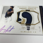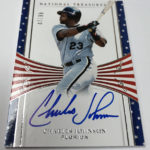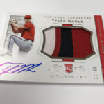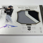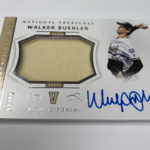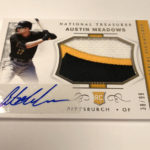 What's buzz-worthy: The fifth edition of National Treasures baseball arrives with some of the biggest names in the history of the game in some crazy booklet card combinations as well as the autographs and memorabilia of current guys that collectors have come to expect.