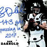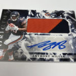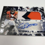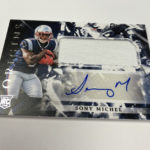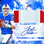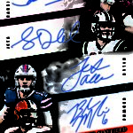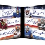 The Basics: The formula here is essentially the same as last year with booklet autographs that will include rookie patch autos, Six-Star Signatures and Rookie Stars Dual Signatures, while the rookies will be signed on-card. Those finds will include rookie autographs, Passing Stars, Rushing Stars, Receiving Stars and Quads. There will be rare inscriptions cards for Passing Stars, Rushing Stars and Receiving Stars, too. ... The rookie patch autos will have Red (/99 max), Blue (/49), Turquoise (/25), Gold (/10), Green (/5), and 1/1 Black brand-logo parallels. The standard rookie autos will have the same rainbow as will the unsigned rookie jumbo jerseys. ... There will be metallic ink autos in the mix, too, with Bronze (/99), Silver (/25) and Gold (/10). ... Rookie book autos will be limited to 49 copies or less with Gold (/25) parallels as well as glove (/2) and 1/1 NFL shield and Nike logo patches. ... Boxes carry a suggested retail price of $100.