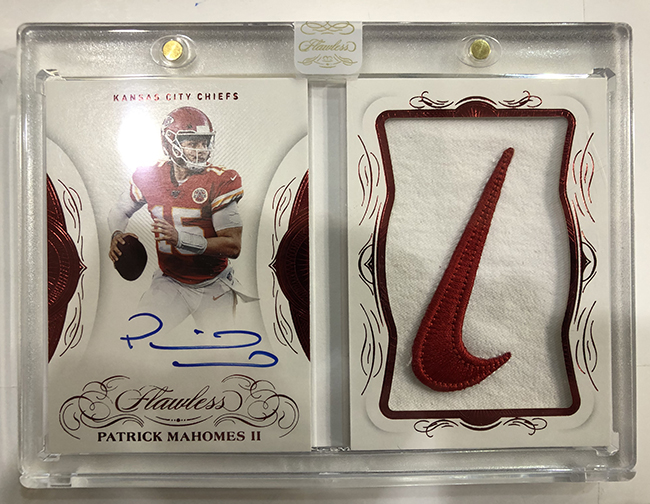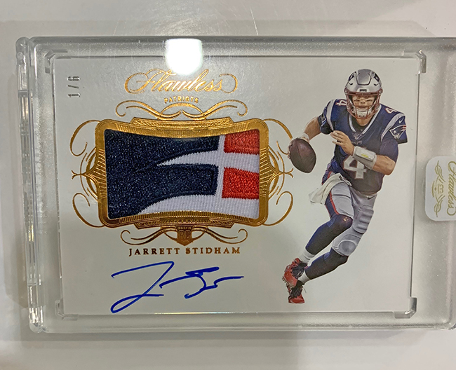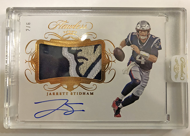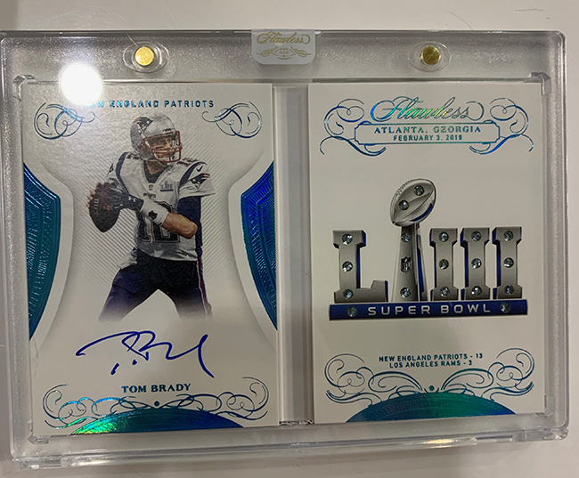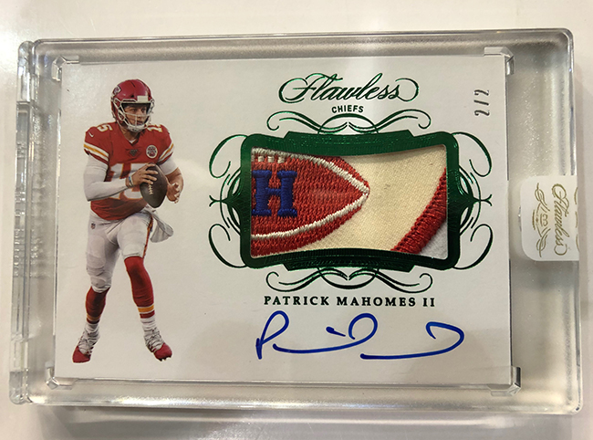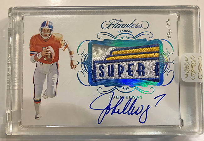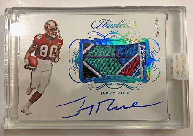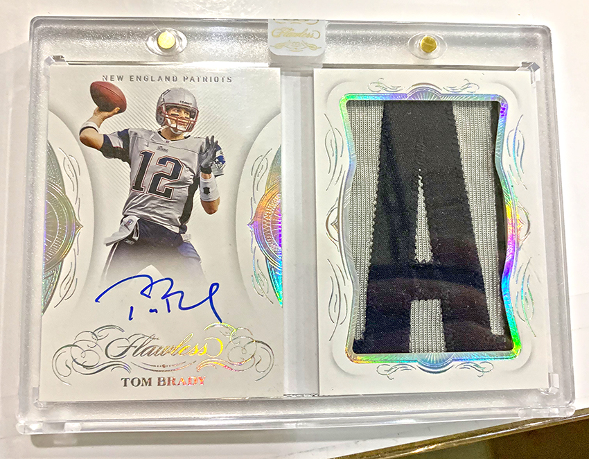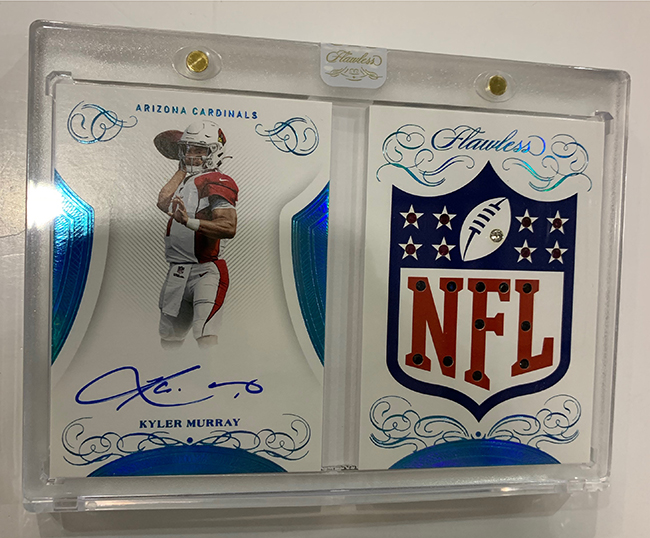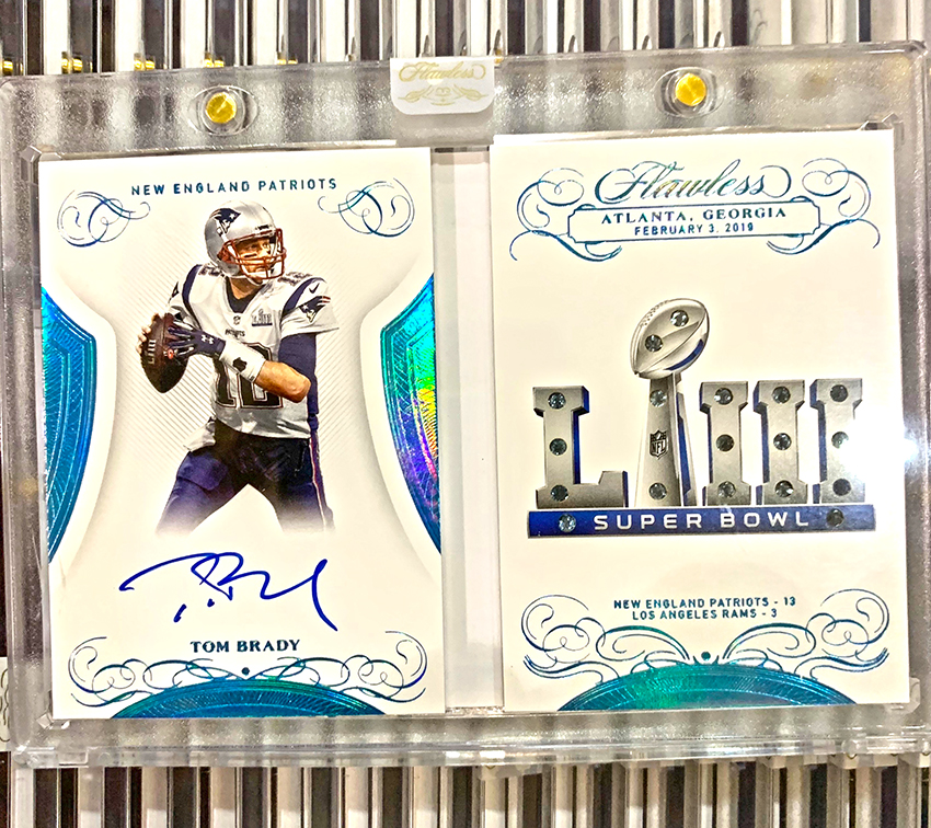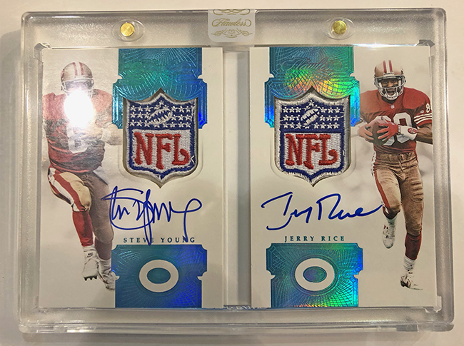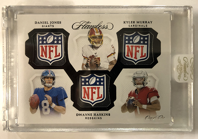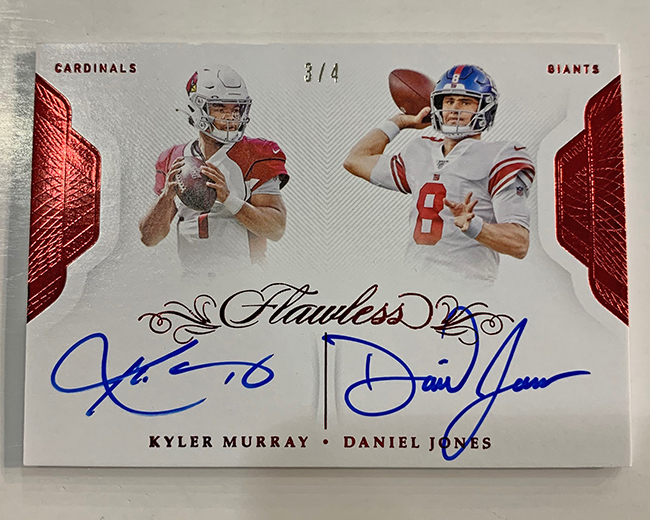 The Basics: Rookie Cards will be autographed gem cards here with the basic versions being limited to just 20 copies. (Nothing in the product will be higher than 25 as usual). You can see the parallel breakdown in the gallery below -- each rookie will have four parallels of their standard card. Legendary players also will appear on gem card starting at just 20 copies apiece (no ink there). For autographed memorabilia cards, there are a number of options here, including Star Swatch Signatures, Rookie Patch Autographs, 1/1 Shield Signatures and others. ... For standard ink, there also will be dual-autographs that will pair past and present players. ... For booklets, there will be Super Bowl Gem cards that pair an autograph on one panel and a second panel with a Super Bowl logo adorned with gems. They will be joined by Veteran books, Rookie books, Signature Gems, Flawless Duals and Super Bowl Gems. ... Among the new inclusions here will be Rookie Showcase memorabilia cards, Super Bowl Swatches, Rookie Cleat autos, Flawless Spikes, Flawless Dual autos, Flawless Finishes, Rookie Shadow Signatures, NFL 100 Autographs Collection and some other surprises. ... The boxes carry an increased suggested retail price of $1,350.