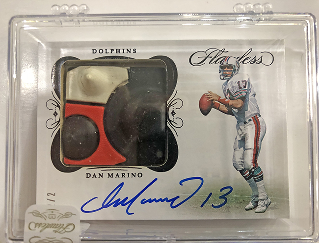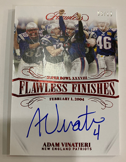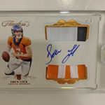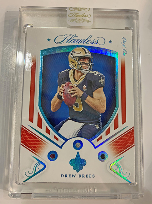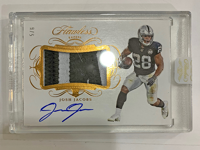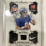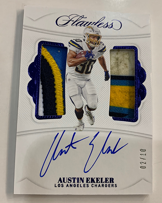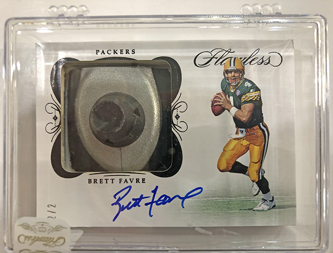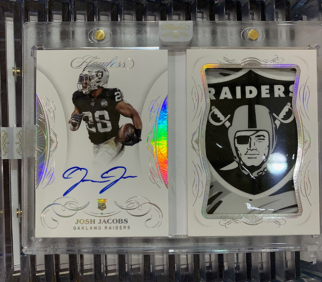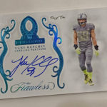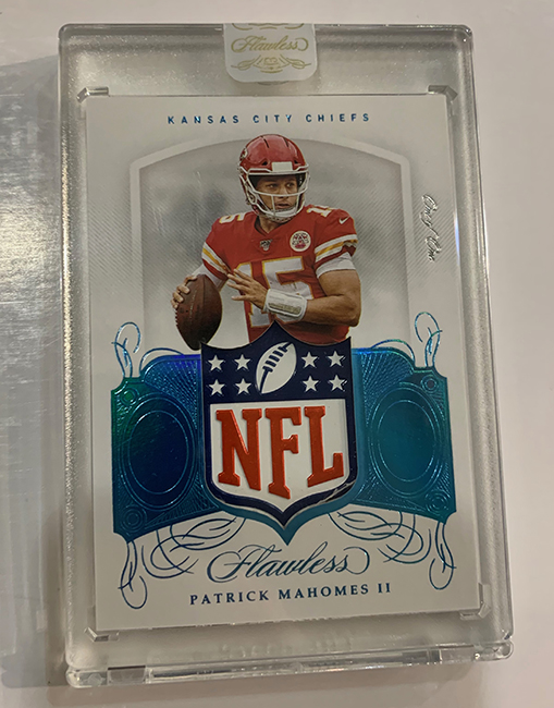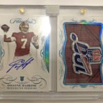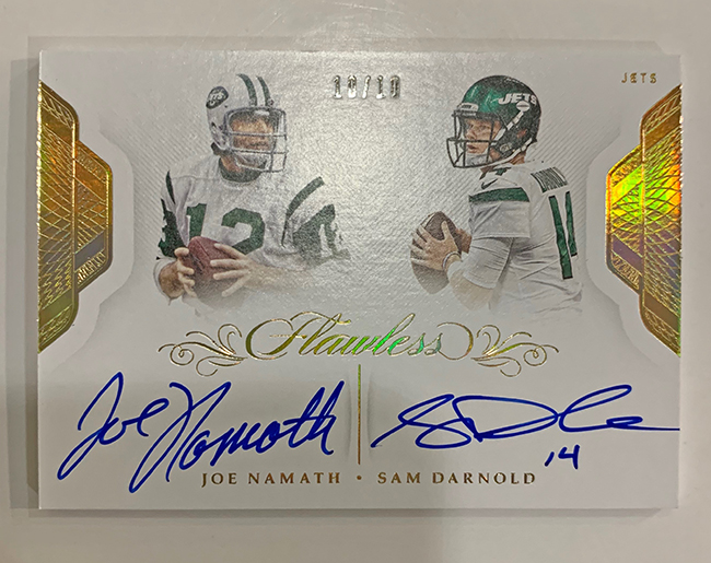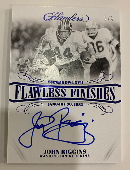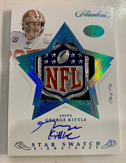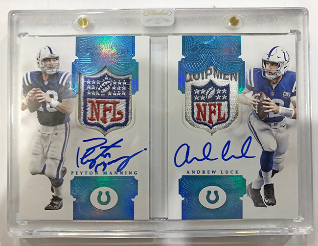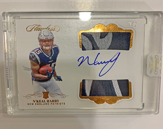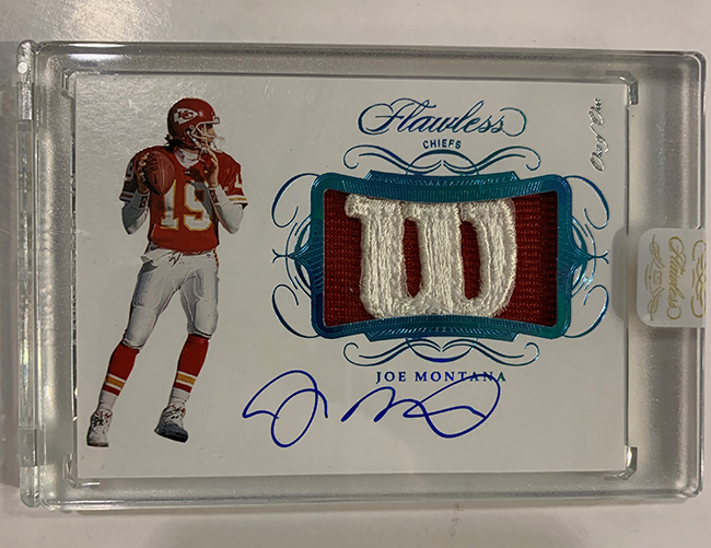 The Basics: Rookie Cards will be autographed gem cards here with the basic versions being limited to just 20 copies. (Nothing in the product will be higher than 25 as usual). You can see the parallel breakdown in the gallery below -- each rookie will have four parallels of their standard card. Legendary players also will appear on gem card starting at just 20 copies apiece (no ink there). For autographed memorabilia cards, there are a number of options here, including Star Swatch Signatures, Rookie Patch Autographs, 1/1 Shield Signatures and others. ... For standard ink, there also will be dual-autographs that will pair past and present players. ... For booklets, there will be Super Bowl Gem cards that pair an autograph on one panel and a second panel with a Super Bowl logo adorned with gems. They will be joined by Veteran books, Rookie books, Signature Gems, Flawless Duals and Super Bowl Gems. ... Among the new inclusions here will be Rookie Showcase memorabilia cards, Super Bowl Swatches, Rookie Cleat autos, Flawless Spikes, Flawless Dual autos, Flawless Finishes, Rookie Shadow Signatures, NFL 100 Autographs Collection and some other surprises. ... The boxes carry an increased suggested retail price of $1,350.