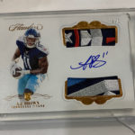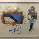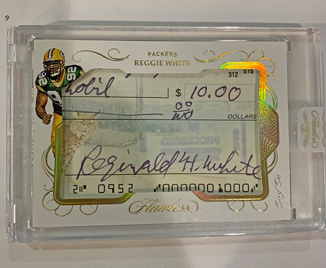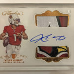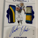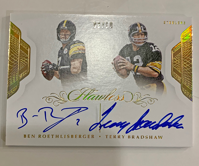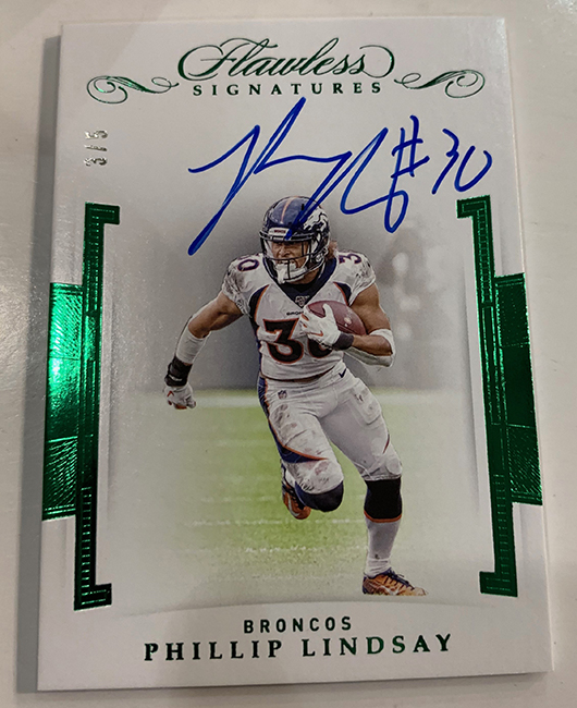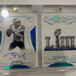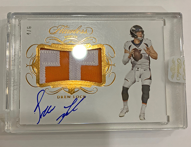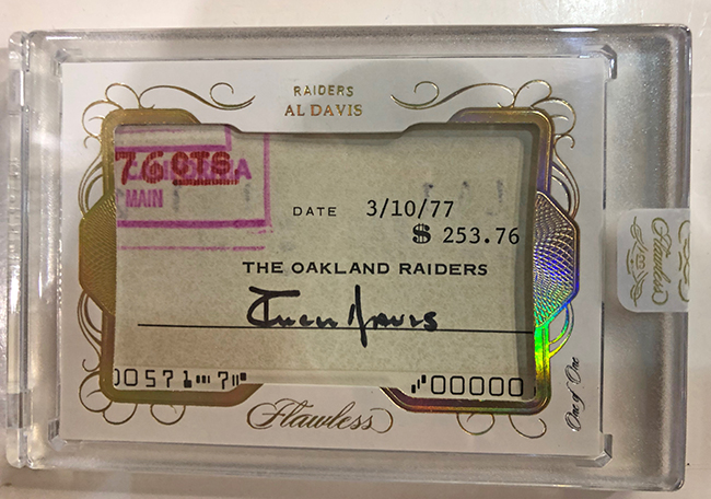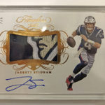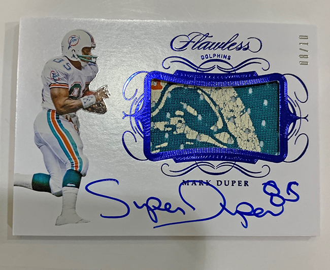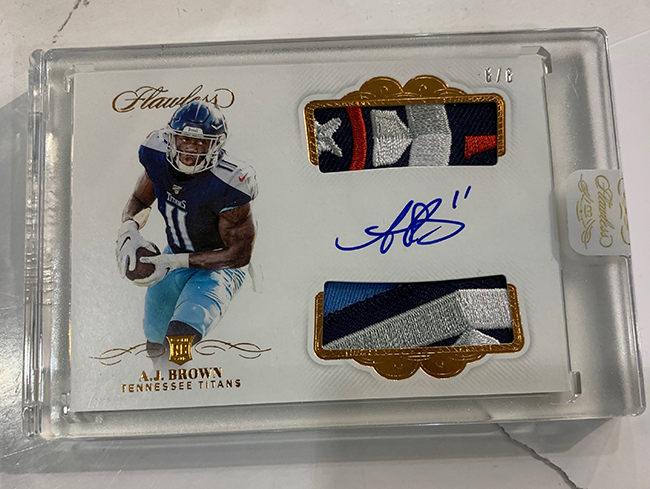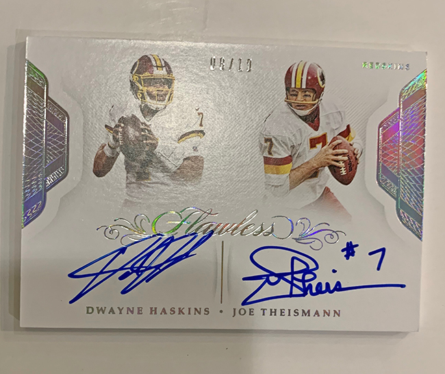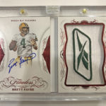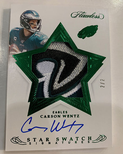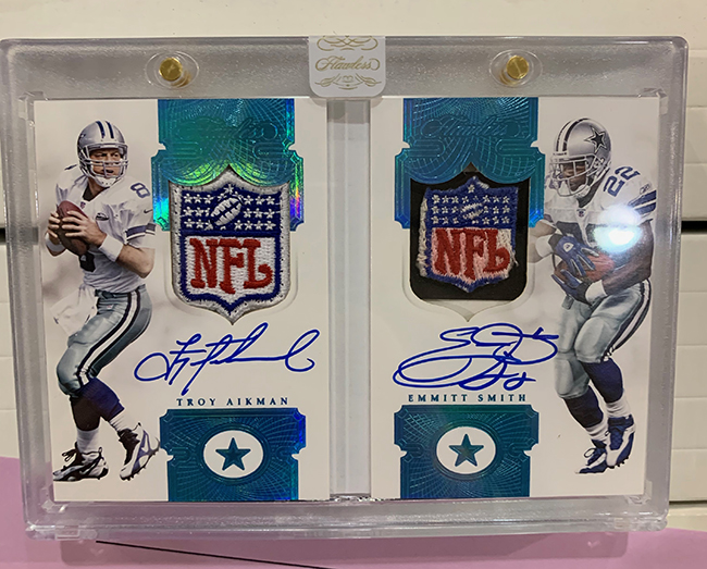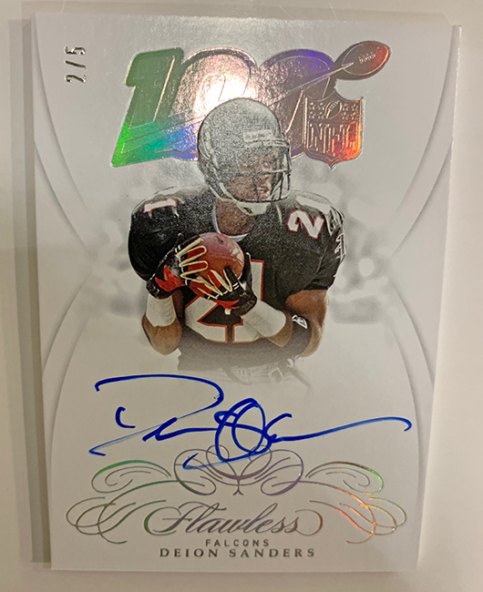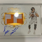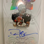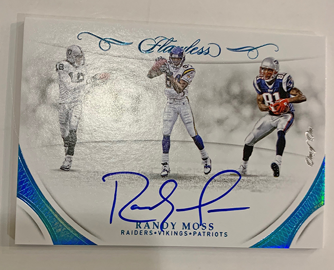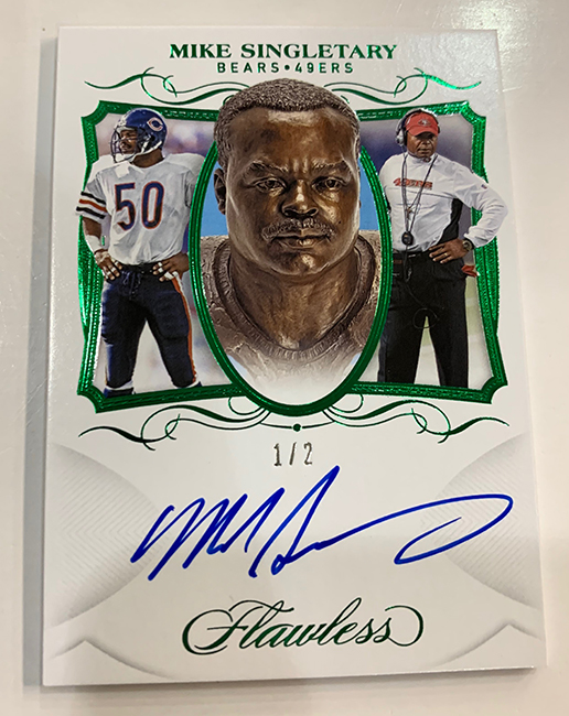 The Basics: Rookie Cards will be autographed gem cards here with the basic versions being limited to just 20 copies. (Nothing in the product will be higher than 25 as usual). You can see the parallel breakdown in the gallery below -- each rookie will have four parallels of their standard card. Legendary players also will appear on gem card starting at just 20 copies apiece (no ink there). For autographed memorabilia cards, there are a number of options here, including Star Swatch Signatures, Rookie Patch Autographs, 1/1 Shield Signatures and others. ... For standard ink, there also will be dual-autographs that will pair past and present players. ... For booklets, there will be Super Bowl Gem cards that pair an autograph on one panel and a second panel with a Super Bowl logo adorned with gems. They will be joined by Veteran books, Rookie books, Signature Gems, Flawless Duals and Super Bowl Gems. ... Among the new inclusions here will be Rookie Showcase memorabilia cards, Super Bowl Swatches, Rookie Cleat autos, Flawless Spikes, Flawless Dual autos, Flawless Finishes, Rookie Shadow Signatures, NFL 100 Autographs Collection and some other surprises. ... The boxes carry an increased suggested retail price of $1,350.