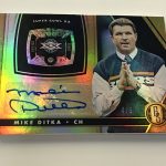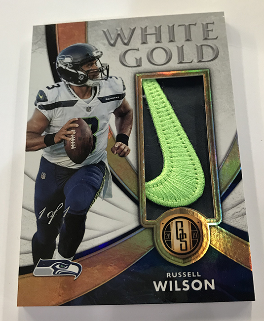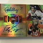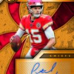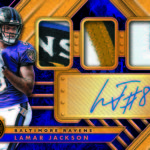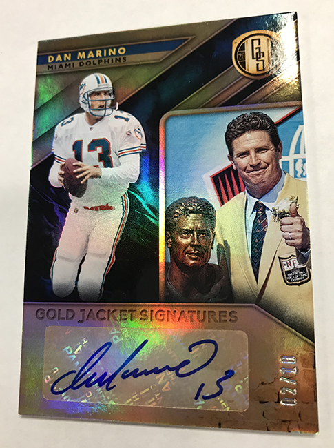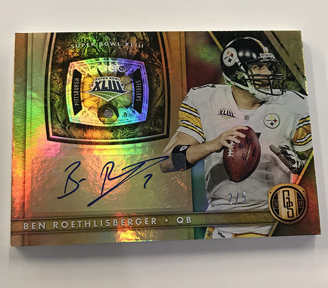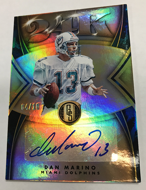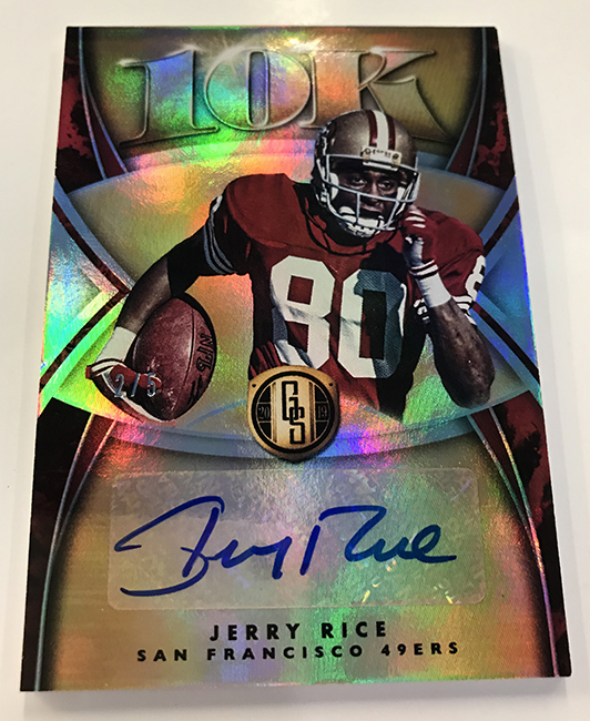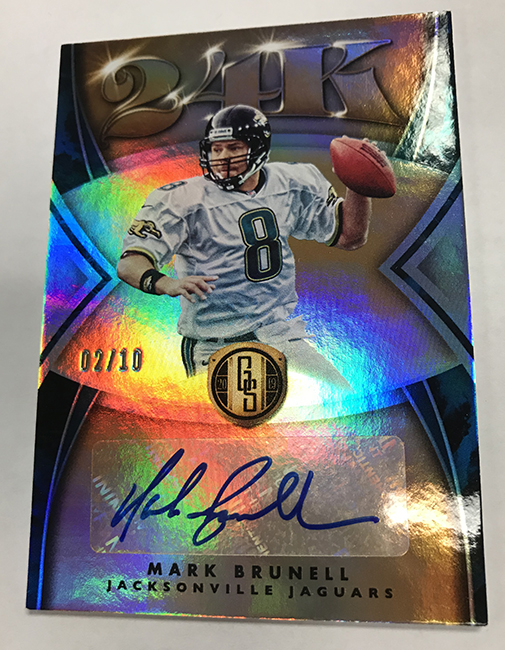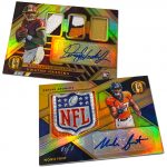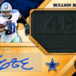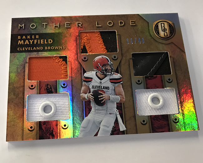 The Basics: The base set (/99) for this one will include 200 cards, though you'll get no more than two per box and they'll sometimes be replaced by parallels -- Platinum (/75), Rose Gold (/25). Emerald (/10) and 1/1 Black. ... Rookie jersey autos will have double-0 and triple- swatch versions with prime (/49) and 1/1 tag parallels. ... Among the autos will be 24K (/49 max) Gold Jacket Signatures (/99) and Gold Strike (/99 max) with each of these having Platinum (/10) and 1/1 Black parallels. Joining them will be Bullion Brand Tag autos (1/1), Super Bowl Diamond Signatures (/5) and duals of those, too. The diamond cards will include a diamond embedded into the card along with the ink. ... The 24K autos are new this year and are joined by 10K autos -- they spotlight players that have gained more than 10,000, and 24,000 yards on the field. ... Other memorabilia sets will include Hall of Gold Threads, Gold Gear, Gold Rush, White Gold, Mother Lode, and Golden Pairs with each having prime and 1/1 Black versions. ... Boxes once again carry a suggested retail price of $160. ... The rookies seen here are mocks to show how new NFL rookies will be in their pro uniforms.
