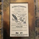 The Basics: The base set will once again be 300 cards capped by 50 short-prints all with an array of mini and full-size parallels. There will be Hot Boxes once again this year with a Silver Hot Box parallel possible and 1/1 Glossy parallel for the full-size cards. For the minis, which are one per pack, there will be A&G backs (1:5), Black (1:10), no-numbers (/50), Brooklyn (/25), Wood (/1; hobby-only), Glossy (/1), Metal (/3; hobby-only for 150 players), Cloth cards (/10) and printing plates (/1). New this year will be Mini Stained Glass variations for 150 players. ... The Relics are again back with a few design types and this time some new additions. There will be full-size Relics and framed mini Relics as well as Presidential Pieces Relics (/25) with Relics from presidents and the White House. There will be DNA Mini Relics with fossils, full-size Arrowhead Relics (/5), "Have Ball, Will Travel" Token Relics (/5, mass transit tokens) and 100 framed 1/1 original buybacks. ... There also will be auto Relic books (/10 copies max) and auto dual Relic books (/10 or less). ... The Framed autos will once again include past and present baseball players, other athletes, non-baseball celebs and "world's champions" with Black Frame parallels (/25) and Red ink versions. Also in play will be 1/1 cut autos.