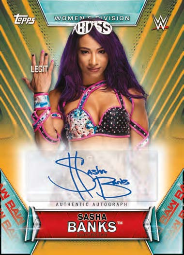 The Basics: The base set once again will consist of 100 cards showcasing the women of Smackdown Live, Raw, NXT as well as legends from the past with their best matches and moments getting their own cardboard tributes (40 cards of the 100). Among the parallels there will be Purple (/99), Bronze (/75), Orange (/50), Blue (/25), Gold (/10) and 1/1 Red versions. ... Among the inserts will be a set for Team Bestie -- WWE Hall of Famers Trish Stratus and Lita -- as well as the Mixed Match Challenge, Women's Evolution 2018 and the Women's Royal Rumble. The inserts will have Orange, Blue, Gold and Red parallels in same volumes as base parallels. ... Autographs will start at 199 serial-numbered copies with Green (/150), Purple (/99), Bronze (/75), Orange (/50), Blue (/25), Gold (/10), Black (/5) and 1/1 Red versions as well as printing plates. A new inclusion this year will be dual-auto cards with Gold (/10), Black (/5) and 1/1 Red parallels as well as triples with Black and Red parallels. ... Relics will have three types -- Shirts, Mat Relics and Championship Side Plate Patches. These will all have Purple (/99), Bronze (/75), Orange (/50), Blue (/25), Gold (/10) and 1/1 Red as well as autographed (/10) and auto Red (1/1) versions for shirts and mats. Mats also will have Green (/150) and Black (/5) versions in its rainbow.