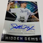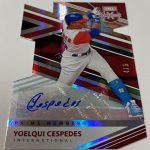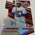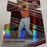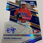 The Basics: All 200 base cards here will be limited to no more than 999 copies and each card will have 15 parallel sets but they were not detailed. The last 30 cards from that checklist will include Dominican Prospect League standouts. Autographs here will have 11 parallels all limited to no more than 100 copies per card and among them will be Status Diecuts and Prime Numbers C. Also in the hits lineup will be Hidden Gems autos for 20 perhaps-overlooked players as well as Prospect Materials cards that will have seven types of parallels with five being prime. College Ticket cards will be found for 50 top college players with these found on Optichome stock -- two cards with that stock per box -- and there will be Holo parallels as well as some will be autographed. There also will be a base Optichrome set to chase here. ... Five-card packs will once again carry a suggested retail price of $20 ($100 per box).