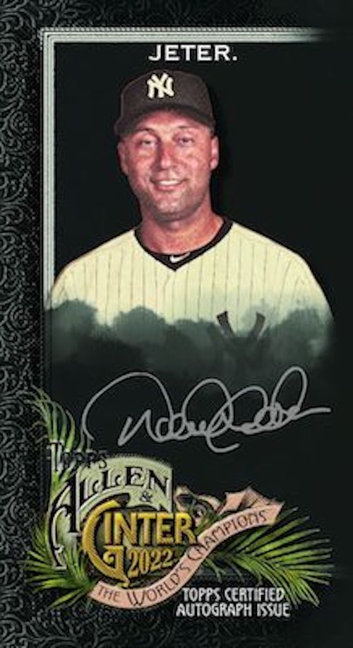 The Basics: The base set will once again be the familiar 300 cards capped by 50 short-prints -- all with mini parallels. Autographs are also in play here -- apparently one per box -- with a meaty lineup of signers. There are no other announced inclusions here for this format, which arrives at a lower price than last year's edition via Topps' site. ... Among the autos? Derek Jeter, Aaron Judge, Bo Jackson, Greg Maddux, Miguel Cabrera, Mariano Rivera, Manny Machado, Ronald Acuña Jr., Pete Alonso, Rod Carew, Rickey Henderson, Randy Johnson, Vladimir Guerrero Jr. for starters for baseball. For non-players? Alice Cooper, Bradley Beal, Drew Rosenhaus, Jonathan Taylor, Landon Donovan and Michelle Wie West to name a few. The full checklist is linked above.
