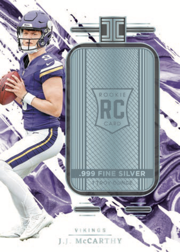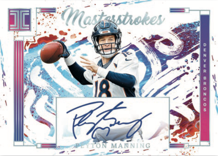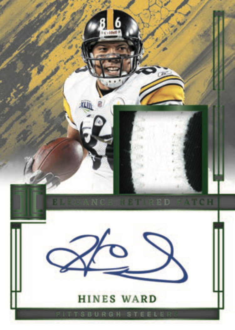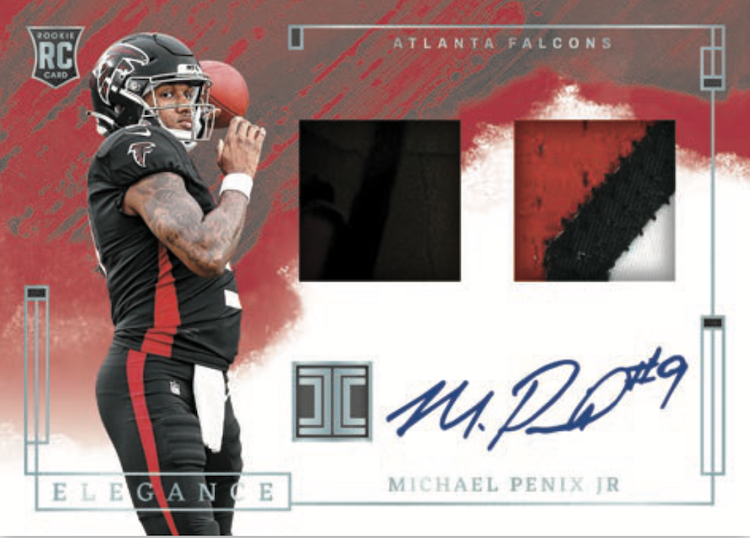 The Basics: Autos, a precious metal card and base cards or parallels (not detailed in advance) are all that will be found here -- some boxes with more ink than others -- but every box will include a rookie patch auto. ... Among the other autographed cards will be Mastertrokes, First Ballot Signatures, Elegance veteran patches, Elegance helmets, Extravagance patches, Impeccable Jersey Numbers, Immortal Ink and Inkpeccable Duos, Trios and Quads for starters. ... Metal cards will include silver and gold cards in NFL, Hall of Fame, Pro Bowl and USA Flag sets. ... Standard cards will have nine parallels, though they were not detailed in advance. ... Boxes carry an increased suggested retail price of $850.