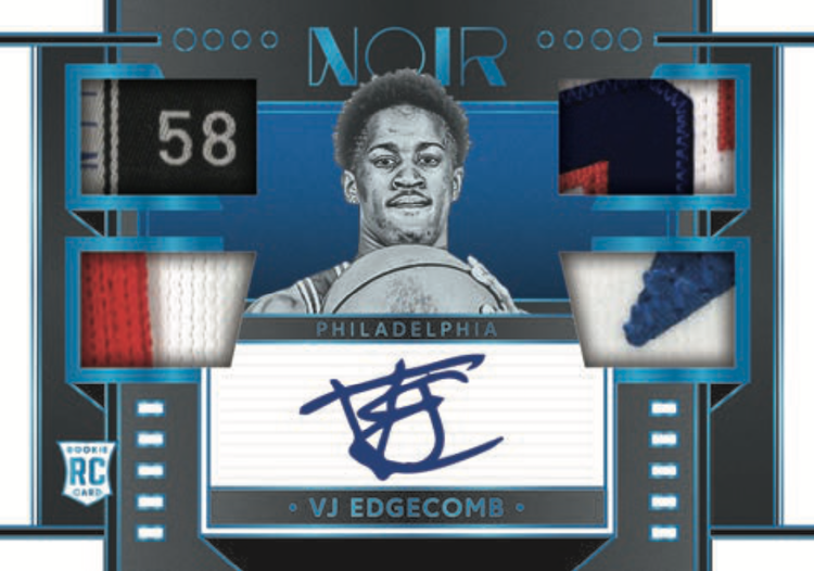 The Basics: There will be tw0 base cards or inserts per box along with the hits this time -- and all autographs are signed directly on-card for this one as has been the routine in past years. Panini exclusive signers V.J. Edgecombe, Tre Johnson and Jeremiah Fears will be in the mix with the autographed sets here including rookie patch autos, quad patch autos, Midnight Signatures, Starring Role, Spotlight Signatures, Sneaker Spotlight Signatures, Captions, Dual Signatures and Lucky Endorsements. ... Meanwhile, memorabilia card sets will include Jumbo Materials, Box Office, New Wave, Elegant Decor, Screenplay, Lights Camera Action! and Sneak Peak. ... Among inserts will be Bio Pics and Motion Picture. ... Parallels will be in play and were teased among the card mock but not detailed in advance for this release. ... Boxes carry a suggested retail price of $750.