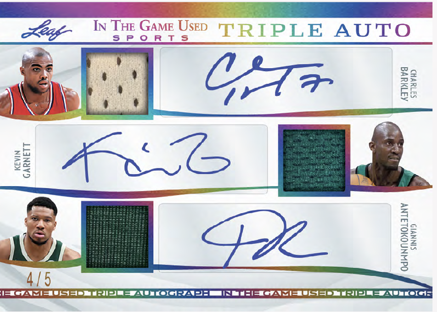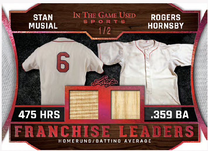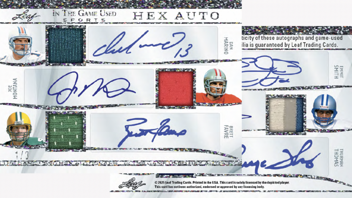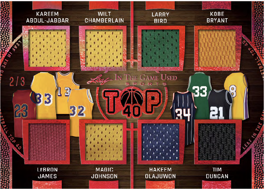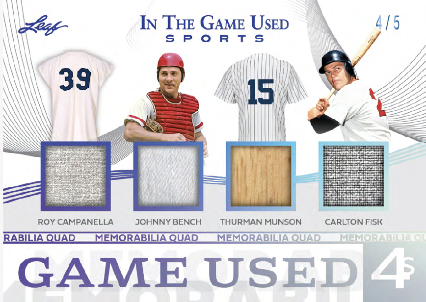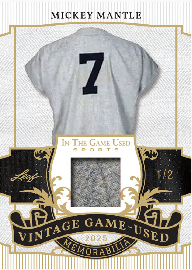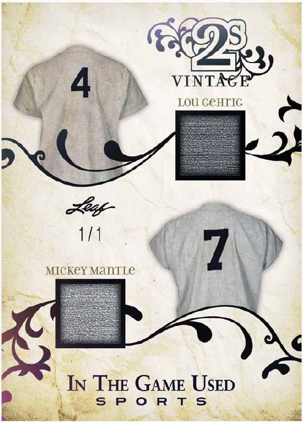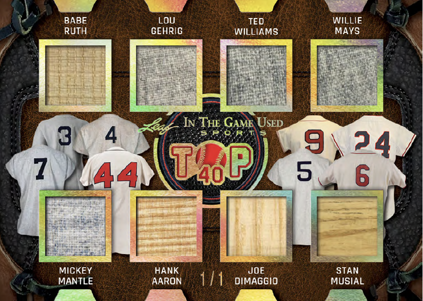 Among the sets will be plenty of parallels and some of them include Video Game Stats, Super Swatch Signatures, Jumbo Memorabilia, Leaf Gold Prospects, Heroes of History, Vintage Game-used, and In The Game-used autos (with duals, triples, quads and six-piece versions. Joining them will be Gate Attraction, In The Game-used and In The Game-used Vintage with duals and quads teased as well as In The Beautiful Game-used (with duals) and Rare Materials cards. Among multi-player cards will be Top 40 cards with eight-piece and 16-piece cards as well as Franchise Leaders and Sports Town.