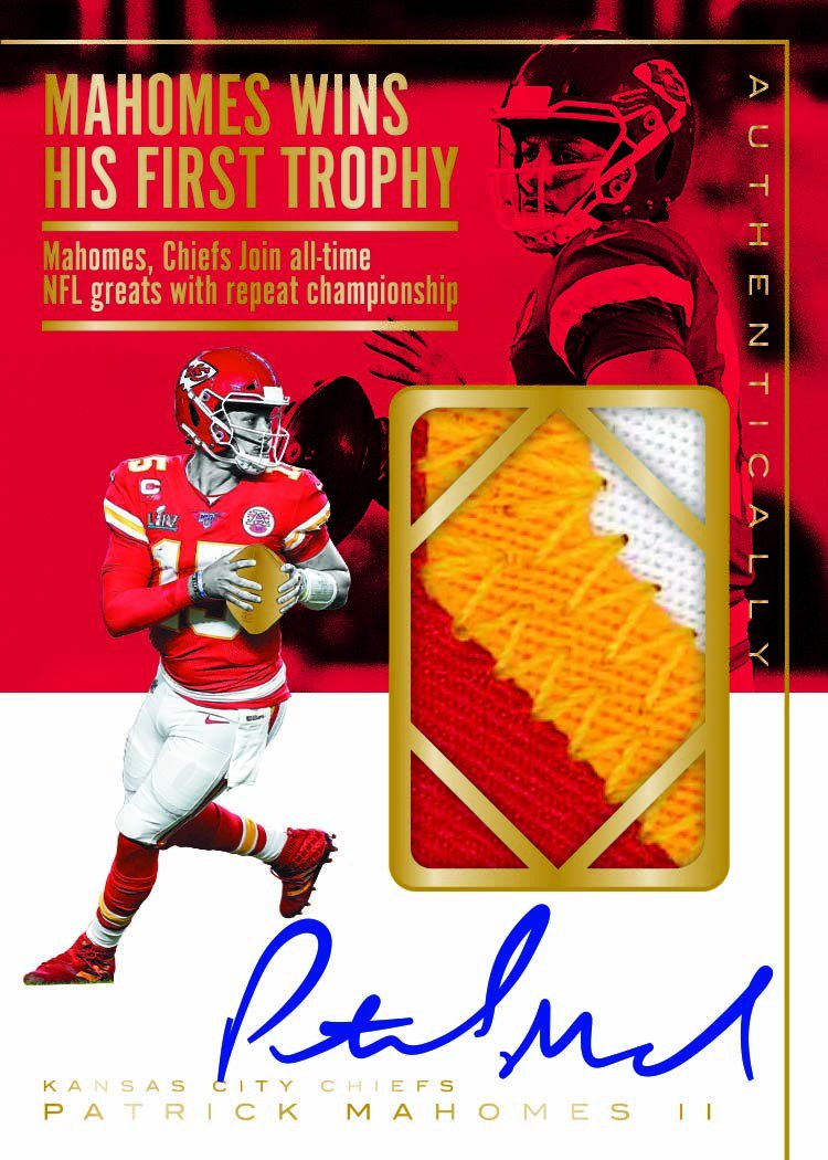 What's buzz-worthy: Panini's focused look on Kansas City Chiefs QB Patrick Mahomes arrives with this ultra-premium release that also will have a lower-end counterpart with a different name and inclusions (click here for that).
