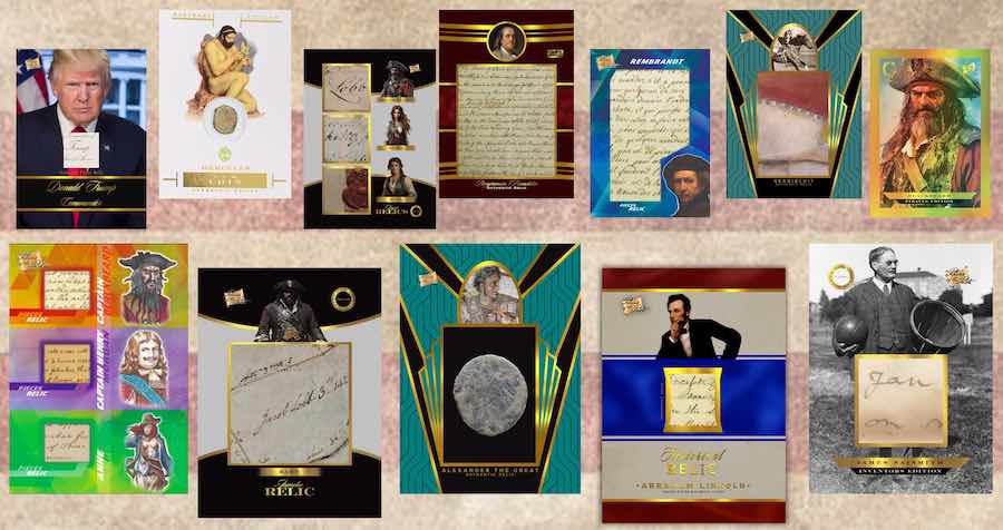 The Basics: There will be more than 500 different subjects in this one alone -- a mix that includes relics, cut autos, coins and more. Among them? George Washington, Pablo Picasso, Benjamin Franklin, Martin Luther King Jr., Abraham Lincoln, John F. Kennedy, other past presidents and other notables from history and pop culture. ... Pieces are from releases that started in 2017 and going forward -- stuff like coins, fossils, gold pieces, stamps, documents, The Bar cut auto redemptions and more. Boxes will carry a suggested retail price of $60.