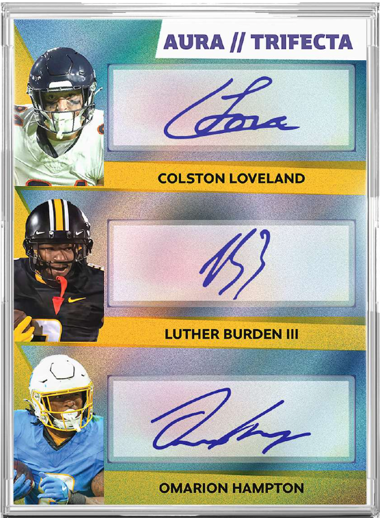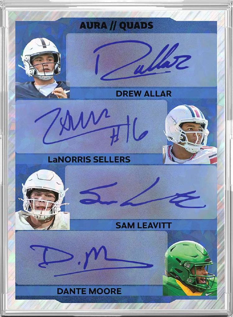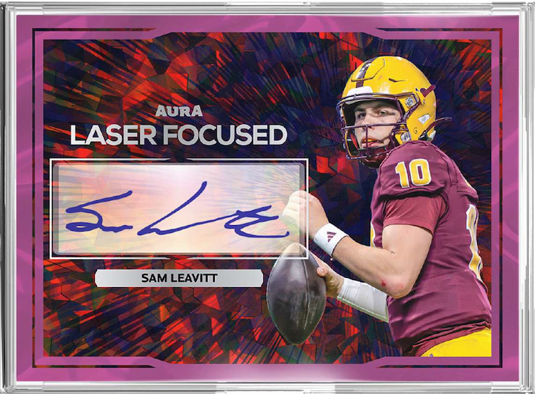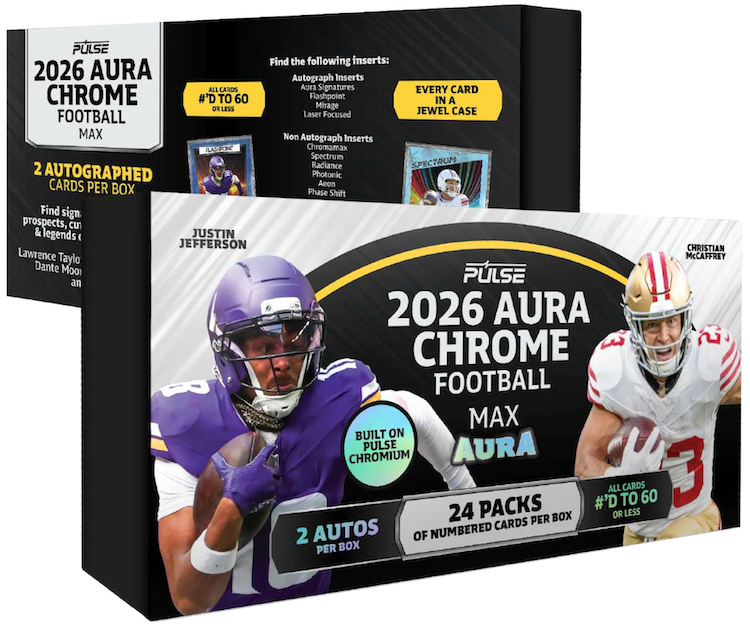 The Basics: All cards will be encased and serial-numbered for this one with nothing over 60 copies. Among the autographed sets here will be Laser Focused, Trifecta, Quads, Mirage, Flashpoint and Aura. Unsigned cards will include ChromaMax, Radiance, Phase Shift, Spectrum and Aeon. ... Among the showcased players will be Dan Marino, Justin Jefferson, Cam Skattebo, Sam Leavitt, Dante Moore, Drew Allar, LaNorris Sellers, Colston Loveland, Luther Burden III, Omarion Hampton, Carnell Tate, Lawrence Taylor and Christian McCaffrey for starters. ... Hobby boxes will carry a suggested retail price of $124.99, while Heat Seeker boxes will start at $29.99. Max boxes will start at $191.99.