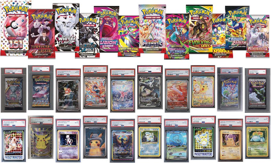 The Basics: This one will include packs from releases as far back as 1999 with chase items including "graded 10s, gems, First Editions, holos, foils, shadowless, low pops, sealed packs, sealed blaster packs, sealed decks” and more. ... Packs will include these releases and more -- 1999 Base Set Unlimited, 2000 Team Rocket 1st Edition, 1999 Fossil 1st Edition, 1999 Jungle 1st Edition, 2019 Sun and Moon Unbroken Bonds, 2017 Shining Legends, 2011 Black and White Emerging Powers and 2013 Black and White Plasma Blast. ... Newer packs in play will include Pokemon 151, Evolving Skies, Fusion Strike, Prismatic Evolutions, Destined Rivals, Surging Sparks, Phantasmal Flames, Paldean Fates, Lost Origin, Mega Evolution, Paldea Evolved and Surging Sparks for starters. ... These boxes carry a suggested retail price of $79.95.