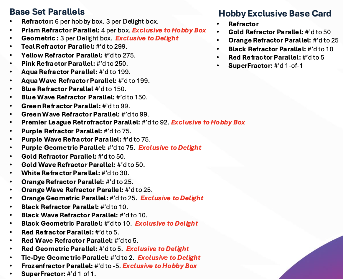 The Basics: Topps teased on-card autos from Mohamed Salah, Thierry Henry, Wayne Rooney, Max Dowman, Rio Ngumoha and Estêvão Willian for starters. There are more than 30 parallels per card and then some "hobby exclusive base cards" (not explained) will have a smaller lineup of just six versions.