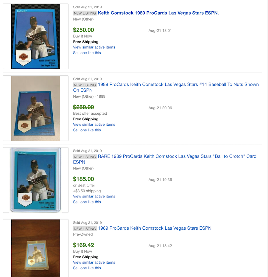 The story of how Keith Comstock's memorable 1989 ProCards Las Vegas Stars card happened was told in a Wednesday ESPN.com piece titled "'You're the guy with the ball to the crotch': The inside story behind the funniest baseball card ever made."