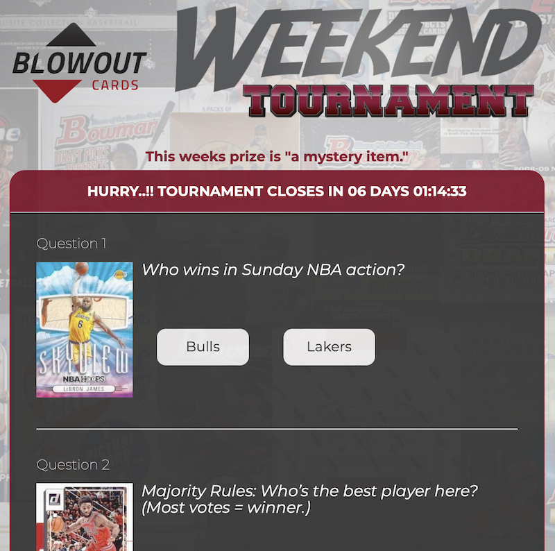 Did you get in on last week's action? Check the leaderboard and contact fish@blowoutcards.com to claim your prize if you're the winner.