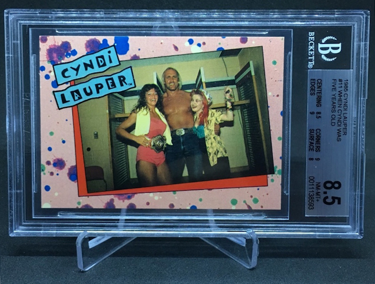 The Card: 1985 Topps Cyndi Lauper #11 (with WWE's Hulk Hogan and Wendi Richter)