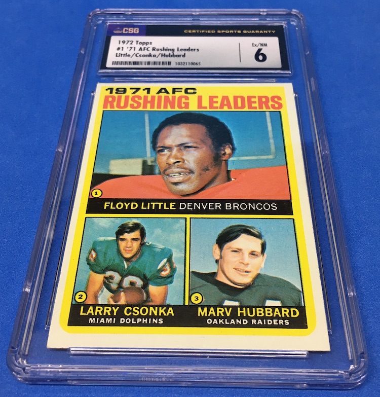The Card: AFC Rushing Leaders (Floyd Little, Larry Csonka & Mark Hubbard) 1972 Topps