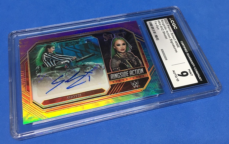 The Reason Graded: I picked up this inked card early last year when she was flying to new heights in NXT and was primed to arrive on the main WWE roster ... and that she did. I also grabbed this since that's her first NXT name and it's since been changed -- and the sig did, too. I like the appeal of early cards with ink that isn't likely to appear on cards later. I landed this on-card auto from a premium brand for about what a standard blaster box of WWE retail would have cost (if it still existed), so that made this a solid find. It was clean enough I knew I wanted this one graded, too, so it went into a sub this year.