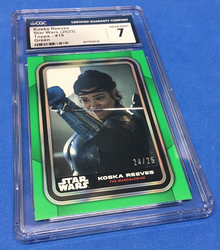 The Reason Graded: My Star Wars box buying has pretty much ground to a halt in recent years with the odds on hits getting funky at retail -- where I'd be more likely to dabble -- and then the influx of TV series to cards that don't really do that much for me. (There's too much and I don't care to need encyclopedic knowledge to know what references what when watching TV.) I did pick off this rarity of the wrestling star since it's rare and was at a decent price ... and I figured it would be worth a slab.
