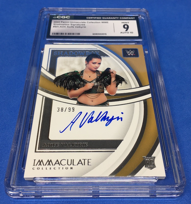 The Card: Aoife Valkyrie (aka Lyra Valkyria) 2022 Panini Immaculate Collection WWE Shadowbox Signatures (/99) -- RC-year auto