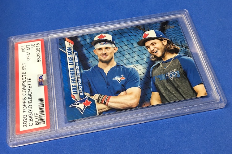 The Card: "Like Father, Like Son" (Cavan Biggio & Bo Bichette) 2020 Topps Complete Set (Walmart) Blue parallel (/299)