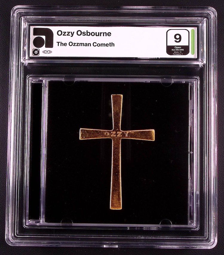 The Reason Graded: With The Prince of (bleeping) Darkness' surprising death at age 76 back in July, I immediately had a few things on my mental grading radar -- just to slab some things regardless of pure value -- as I am a fan and actually got the autograph years ago when he did a book tour. This compilation CD (basically a greatest hits album at that time) with some other stuff worked in was likely my first Ozzy CD and then I worked backwards to Black Sabbath where I'd count him/them among my handful of favorites. This iconic cover -- that being one of his famous gold crosses that he always wore in some fashion -- immediately came to mind for me for a slabbed item on the recordings front.
