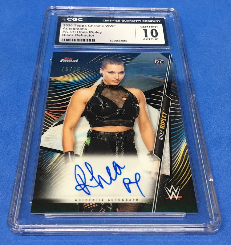 The Card: Rhea Ripley 2020 Topps Finest* WWE Black Refractor Autographs (/25) -- RC-year auto