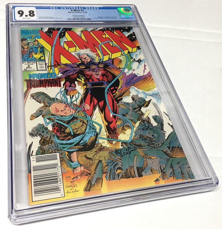 The Reason Graded: Jim Lee's reboot of the X-Men sold millions of copies -- thanks to a puzzle/variant cover packed with landmark visuals -- and I bought my fair share of them back then but not as much as I did for other titles and artists that I liked more. Why is this book from a heavy-run era here in a slab? As I've noted in past lineups here, I had a relative who worked at a book store in a small town, so I was able to see comics before they hit the spinner racks to have their spines broken by meandering fingers and that allowed me to pick off razor-sharp, clean newsstand copies ... while most people got their comics at comic shops. The pop reports aren't split apart -- I wish they were -- but UPC issues like this (vs. a direct copy with a logo in that box) seem to be far rarer in elite grades and completists will pony up more for stuff like this when it comes back with a top mark.