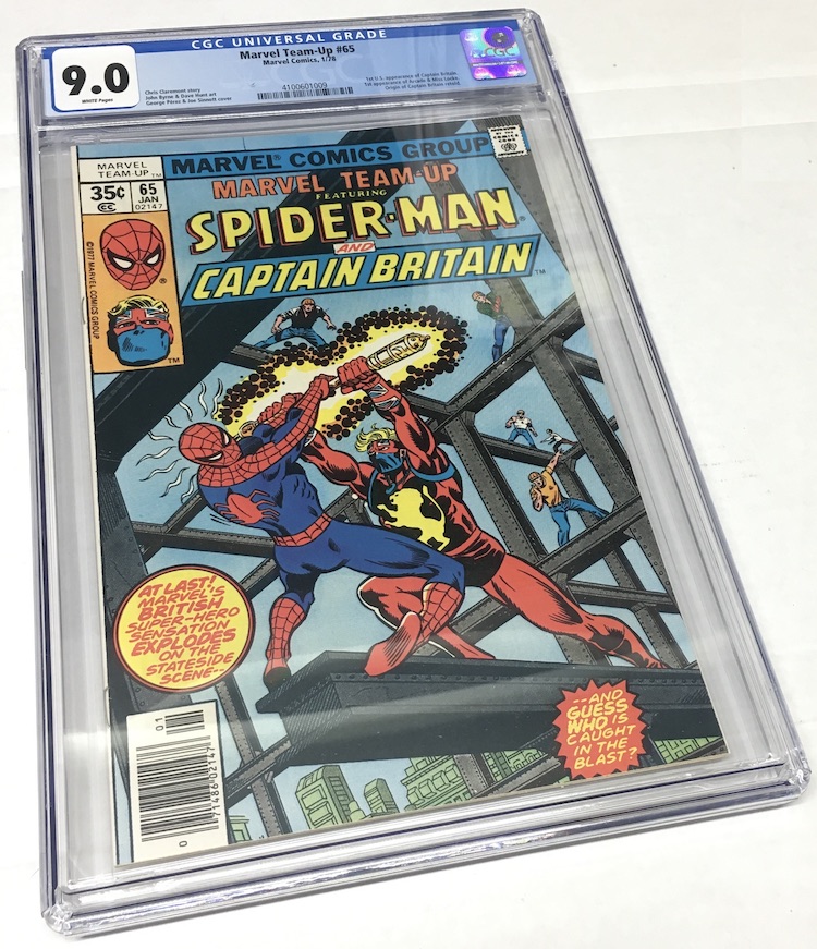 The Reason Bought: I've mentioned a couple of freebie slabs I landed from the comics realm in recent months and those were all books that arrived with the purchase of this book, which is not a top mark but still a pretty clean copy with plenty of issues above it on the pop report. I'm not sure why it's pricey, it's always been findable, but this one is oddly expensive at times when slabbed -- perhaps it's partly Spider-Man fans, the classic formula kind of cover or a reflection of the printing sloppiness of the era, but it's also the first American-issue appearance of a character that has had movie chatter in recent years. For me, I latched onto the Captain Britain character for trivial reasons long ago when Marvel Universe cards arrived and still pick stuff off here and there.