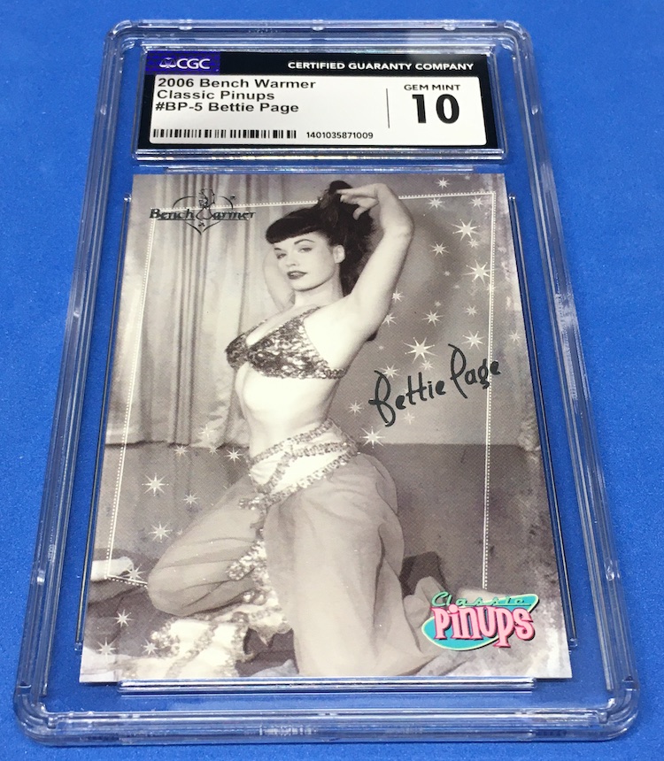 The Reason Graded: This once-controversial and legendary pinup icon of the 1950s has a number of sets that showcase her and her alone that were made through the years, but ever since I found this card -- this razor-sharp cleaner than clean and cleaner than the rest insert -- in a box of BenchWarmer cards I knew it would end up graded at some point. Why? I legit thought this would absolutely check in at the absolute top mark. The photo isn't the best iconic image for Page on the front -- the back is much more styled and more like what you'd find on a comic cook cover (she has many of those these days, too) -- but overall I thought this might make for a good slab, despite not being any kind of super-pricey card.