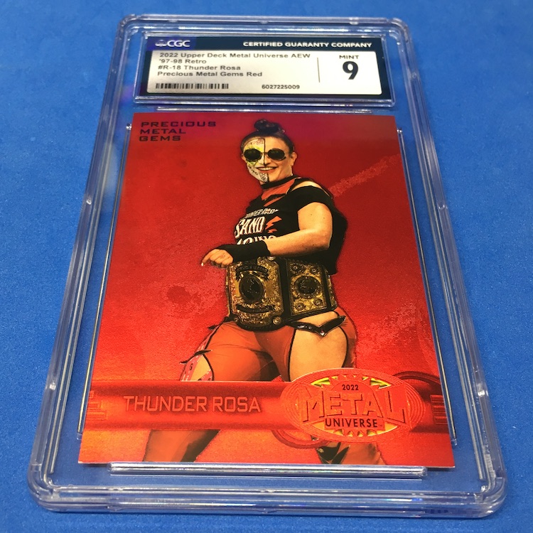 The Cards: Thunder Rosa 2022 Skybox Metal Universe AEW 1997-98 Retro Precious Metal Gems Red (/100) & Purple Spectrum (/199)