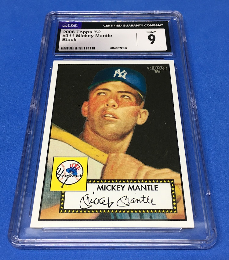 The Reason Graded: I'll never own a '52 and ultimately don't aspire to -- cost isn't worth it to me even if I could -- but this card from a Topps set of the past that used the 1952 design did include an homage to The Mick and tricked it up for the modern age with variation colors in the background. He has six versions -- base (blue) and then Green, Orange, Red, Black and Yellow -- and they are seeded along with the variations (15 total) that are one in five packs in both hobby and retail. Do the math and these aren't impossible ... but also not super easy to find, especially coming up on 20 years later.