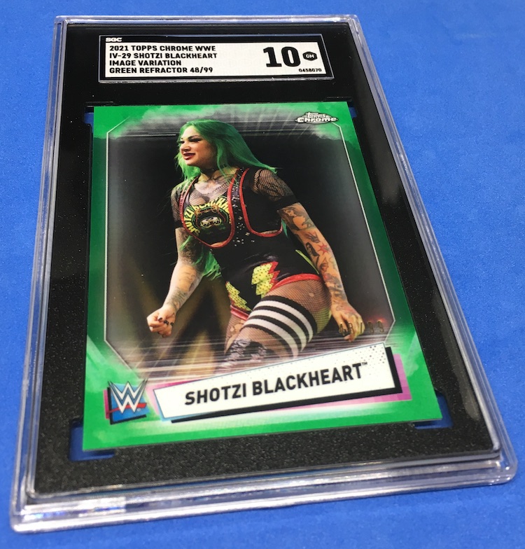 The Card: Shotzi Blackheart 2021 Topps Chrome WWE Image Variations Green Refractor parallel (/99)