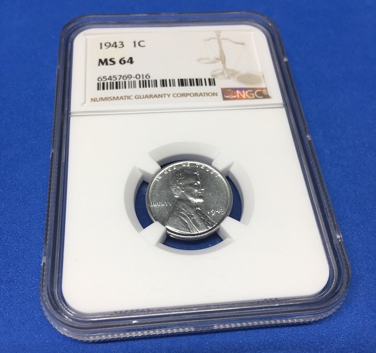 The Reason Bought: I was a little worried about my variety here as I haven't yet sent in any new batches of cards for grading just yet -- I was waiting for CGC to mesh its sports/non-sports into one service and that's done -- so while I waited I figured I'd grab some "other" kinds of slabs to me that are commonplace to many out there in the world. (The Numismatic Guaranty Company is the long-running coin-grading branch of the Certified Collectibles Group and if they add just one or two more niches it seems that they'll pretty much slab everything.) I briefly dabbled with coins as a kid before cards to have a coin book somewhere -- I haven't seen it in literal decades -- but one simple coin that always stuck with me was this one so when I went looking for some slabs -- I have about three or four on the tarmac for future MTGs now -- this one came to mind. What is it? It's the one year that pennies weren't made out of copper as that was being used for equipment in World War II. These aren't that rare but if they got used they did discolor (they got dark) quickly with a coating of zinc on them that would prevent rusting. What is quite rare are copper 1943s, which apparently do exist but I wouldn't go there unless graded ... and there are not many.