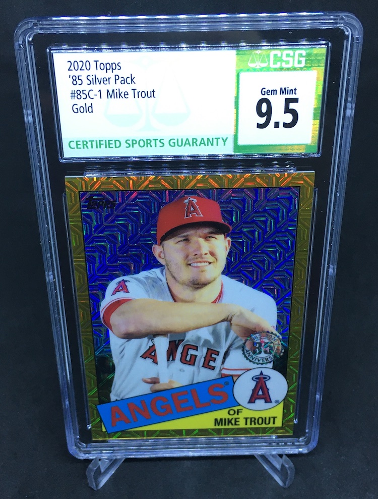 The Card: Mike Trout 2020 Topps 1985 Topps Chrome Box-topper Gold Refractor (/50)