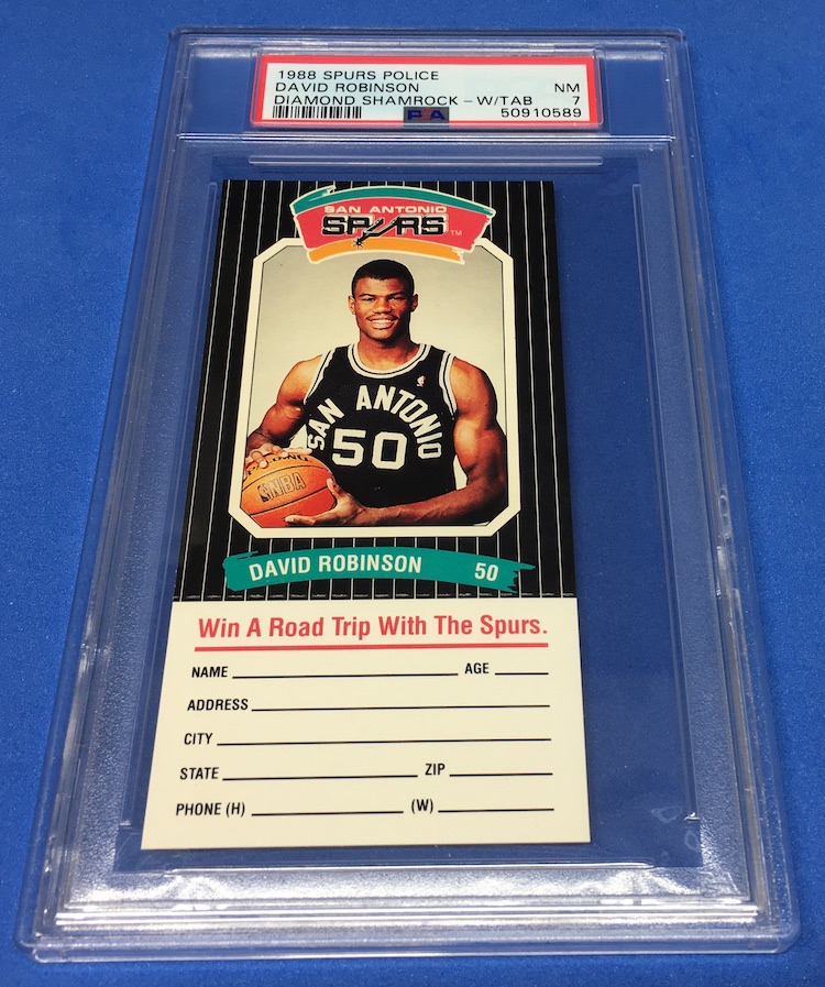 The Card: David Robinson 1988-89 Spurs Police Diamond Shamrock (with tab) -- pre-rookie
