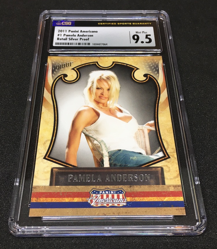 The Card: Pamela Anderson 2011 Panini Americana (retail version) Silver Proof (/100)