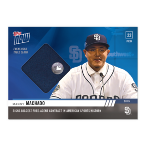 Manny Machado’s first San Diego Padres baseball cards come with a Topps Now first — news conference table cloth Relics