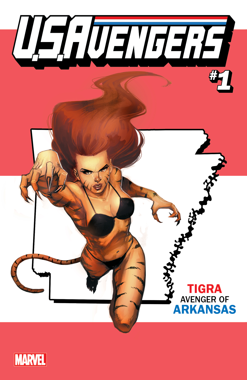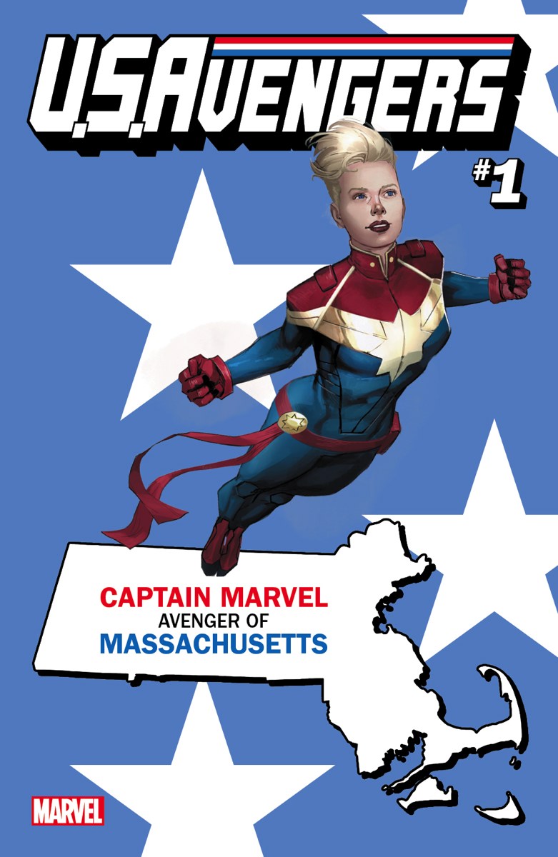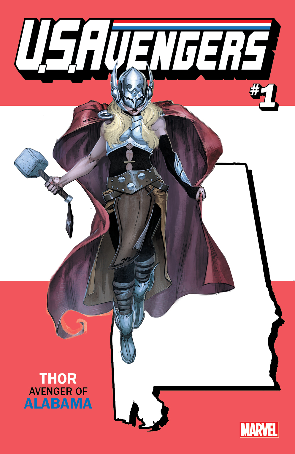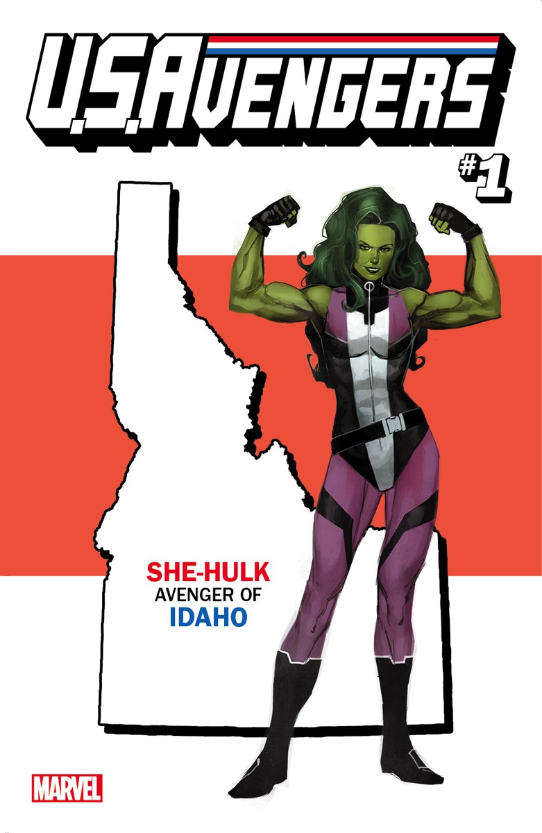 "Marvel’s U.S.Avengers state variants are a chance for our fans and retailers to show their hometown patriotism paired with some of the biggest Avengers from the Marvel Universe," said Marvel's SVP Sales & Marketing David Gabriel. "We knew that a series with the name U.S.Avengers would evoke a sense of honor with all of our fans and we really wanted to go that extra step and offer a variant campaign that would allow our readers to show their hometown pride across this great nation – even our neighbors Canada and Puerto Rico."